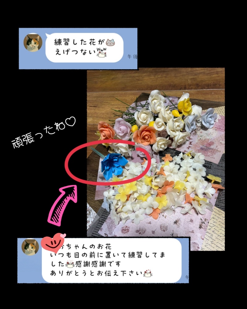 うちの次女ちゃんからの応援の折り紙の花が混じってる🥰