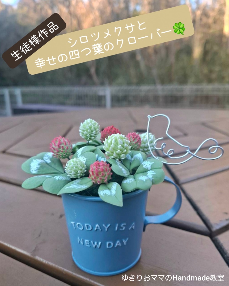 生まれかわった「シロツメクサと幸せの四つ葉のクローバー🍀」を最初に作ってくださったのは、先日講師試験に受かったNさん✨