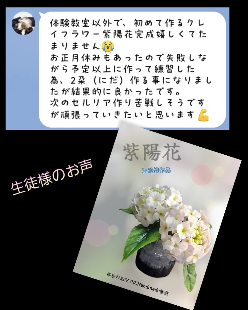 初めてのクレイフラワーにこの花数は皆さん悲鳴をあげますが、Hさんスゴイ💕