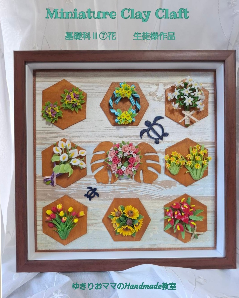 9種類の粘土のミニ花を作ります💕小さいからブローチやピアス等のアクセサリーにアレンジしたり、プレゼントに添えても良いですよね🎵ブーケやスワッグにして額に飾っても可愛いかも💕色鮮やかで楽しいレッスンの一つです😊